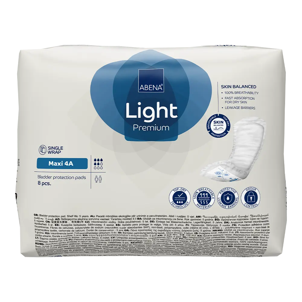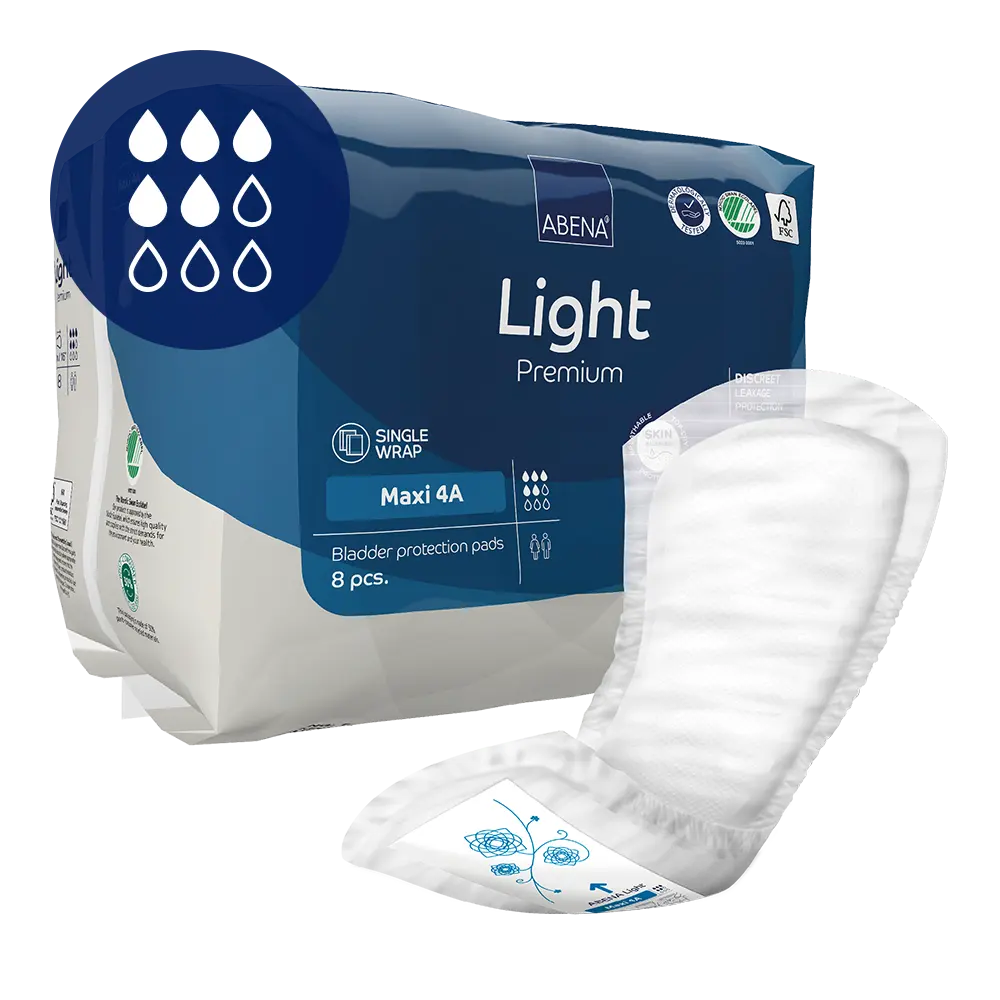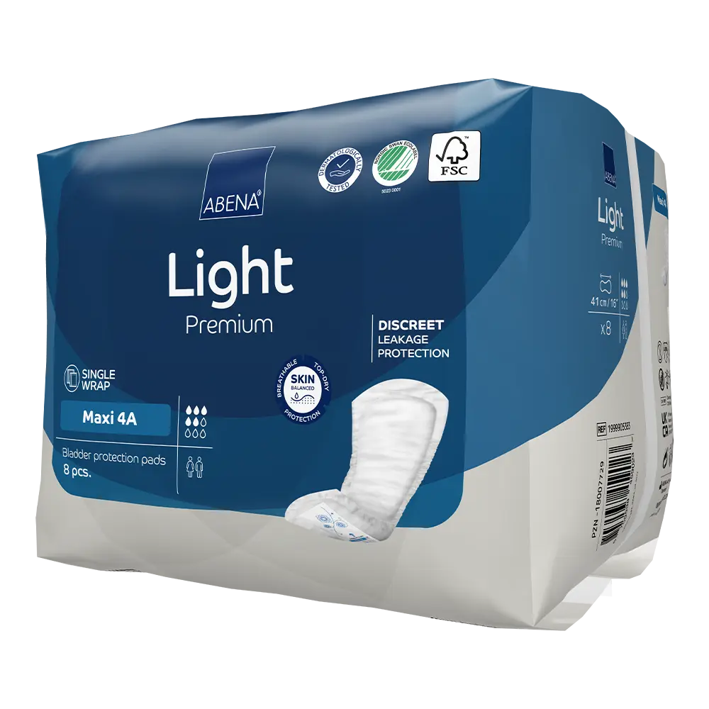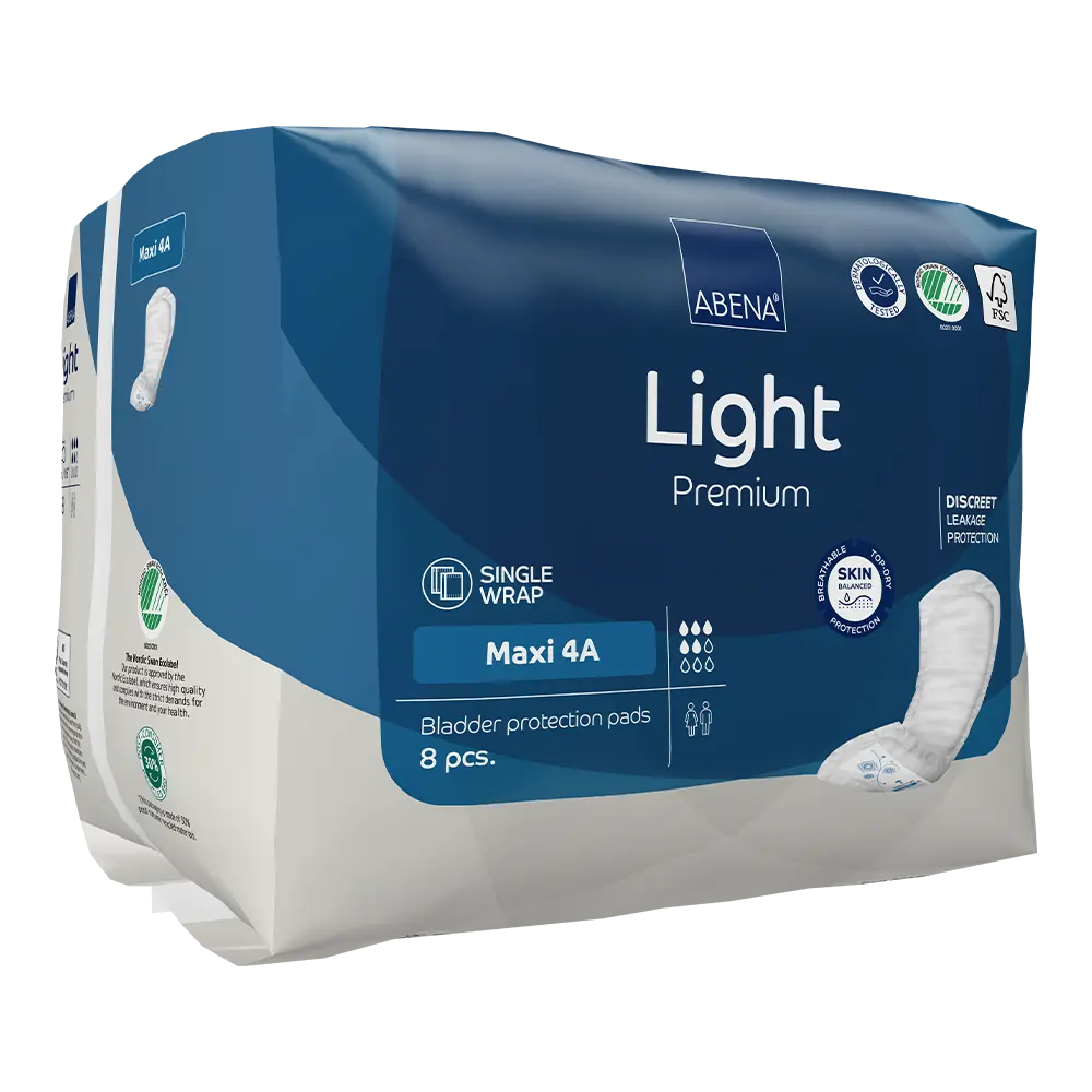 ABENA Light is our Premium range of anatomically shaped bladder protection pads for light to moderate incontinence with adhesive release tape. The high performance core with Top-Dry Technology ensures skin integrity and optimal skin care by keeping the exposed area comfortable and dry even after multiple voids. The fully breathable pads are fitted with invisible lying leakage barriers or has a bowl shape due to elasticated foam edges offering extra protection against leakage. When combining these 3 functionalities- breathability, protection and Top-Dry- it keeps the skin in balance and maintains a natural pH skin balance. The odour control system minimises unpleasant smells. The dermatologically tested products have been given the Nordic Swan Ecolabel and are made from FSC certified materials.