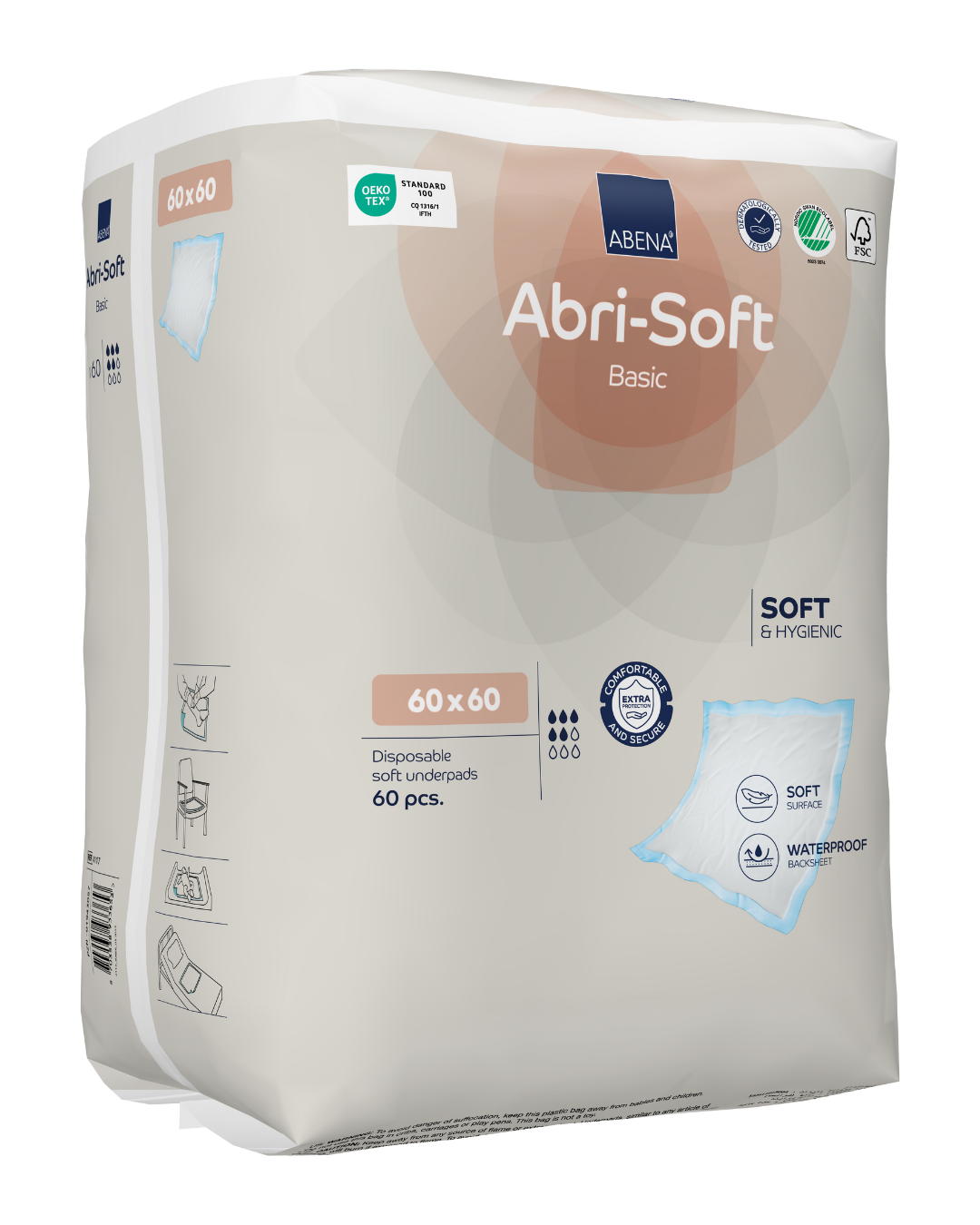 Abri-Soft Basic is a protective, disposable underpad for e.g. beds and chairs. Suitable for incontinent users, but also for non-sterile procedures. The underpad has sealed edges for optimum leakage protection. The surface is covered with a soft nonwoven material for enhanced user comfort. The use of disposable underpads reduces the risk of contamination.