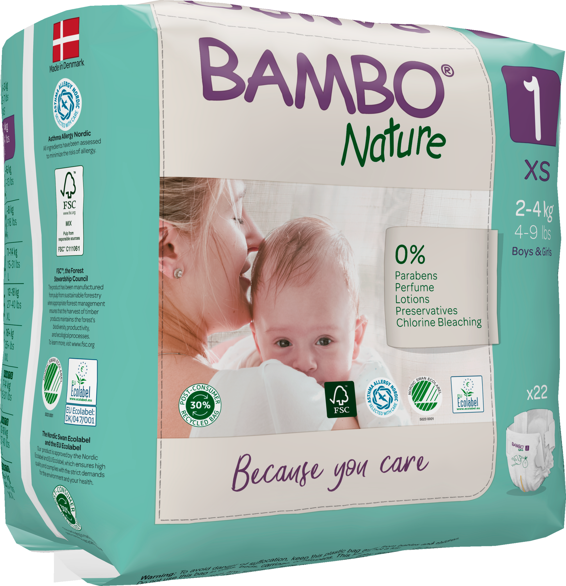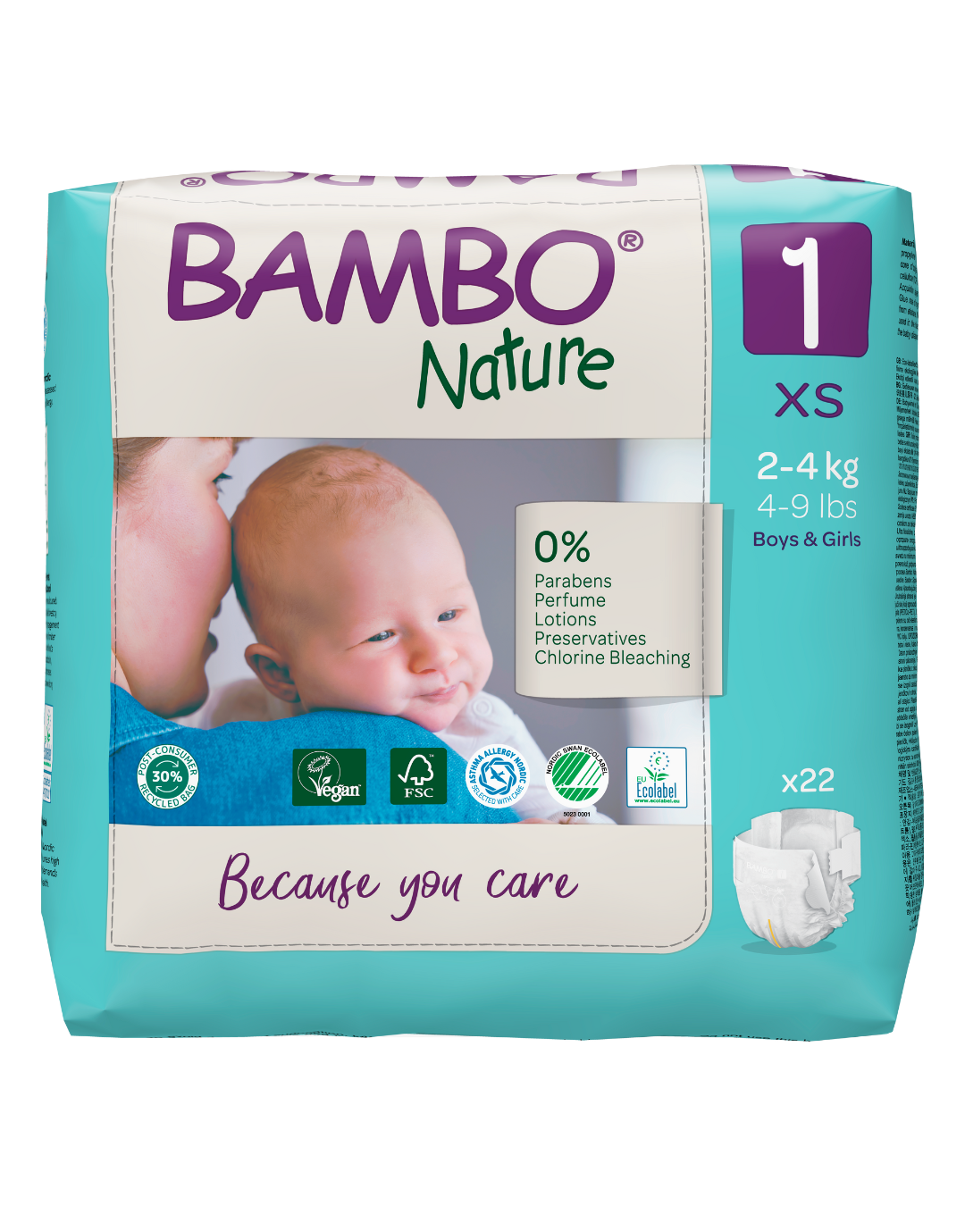 Bambo Nature Eco Nappies - Size 1 (4-9lb/2-4kg)