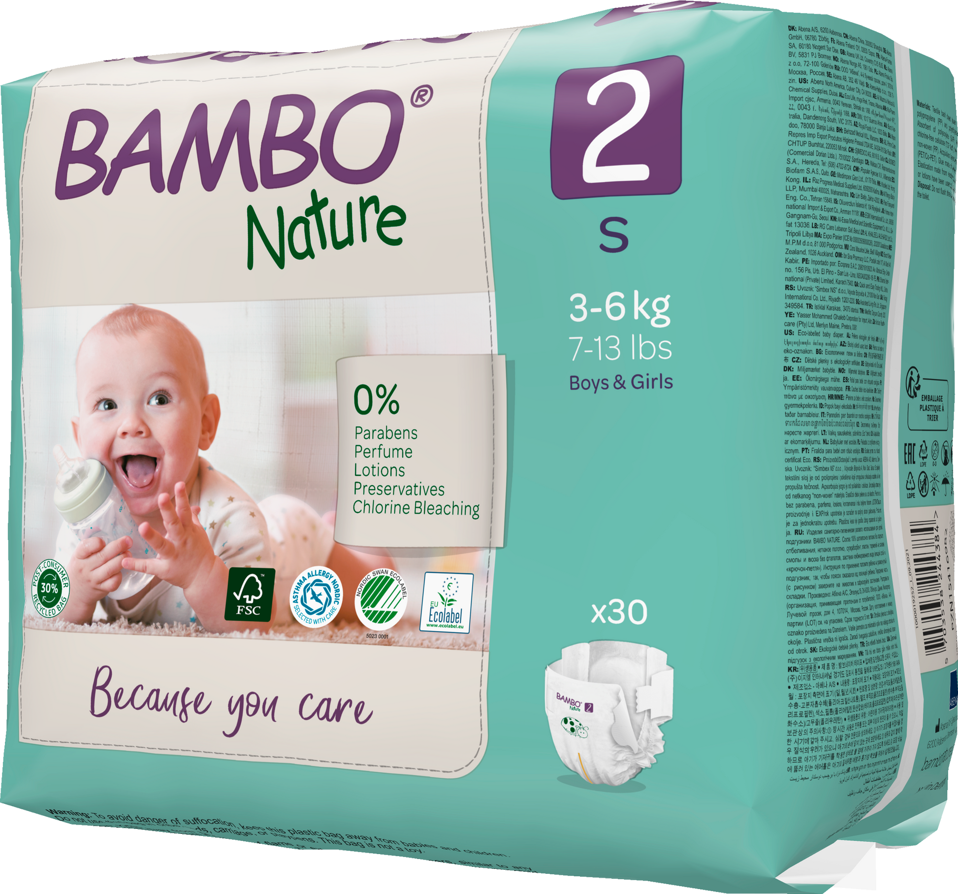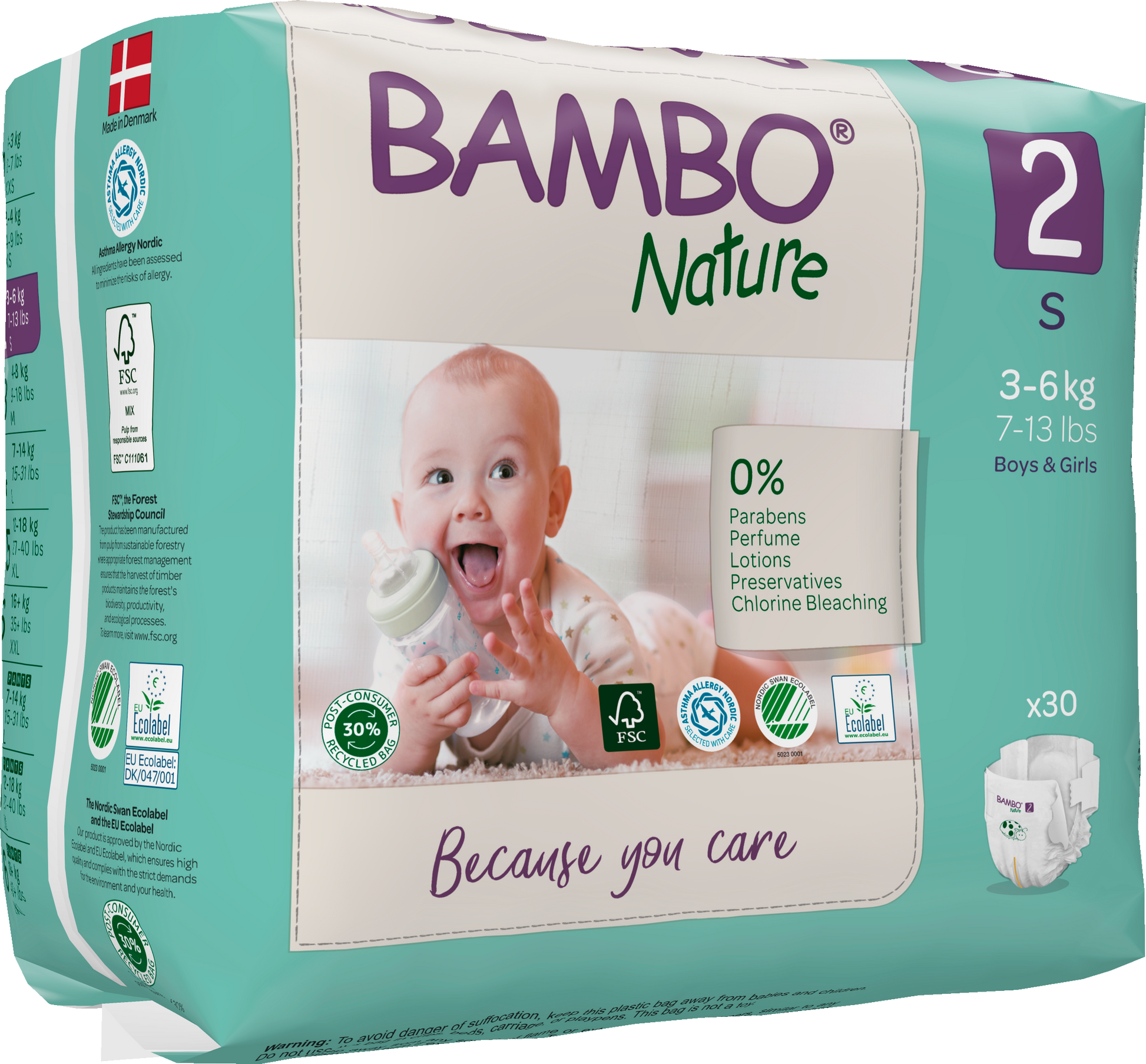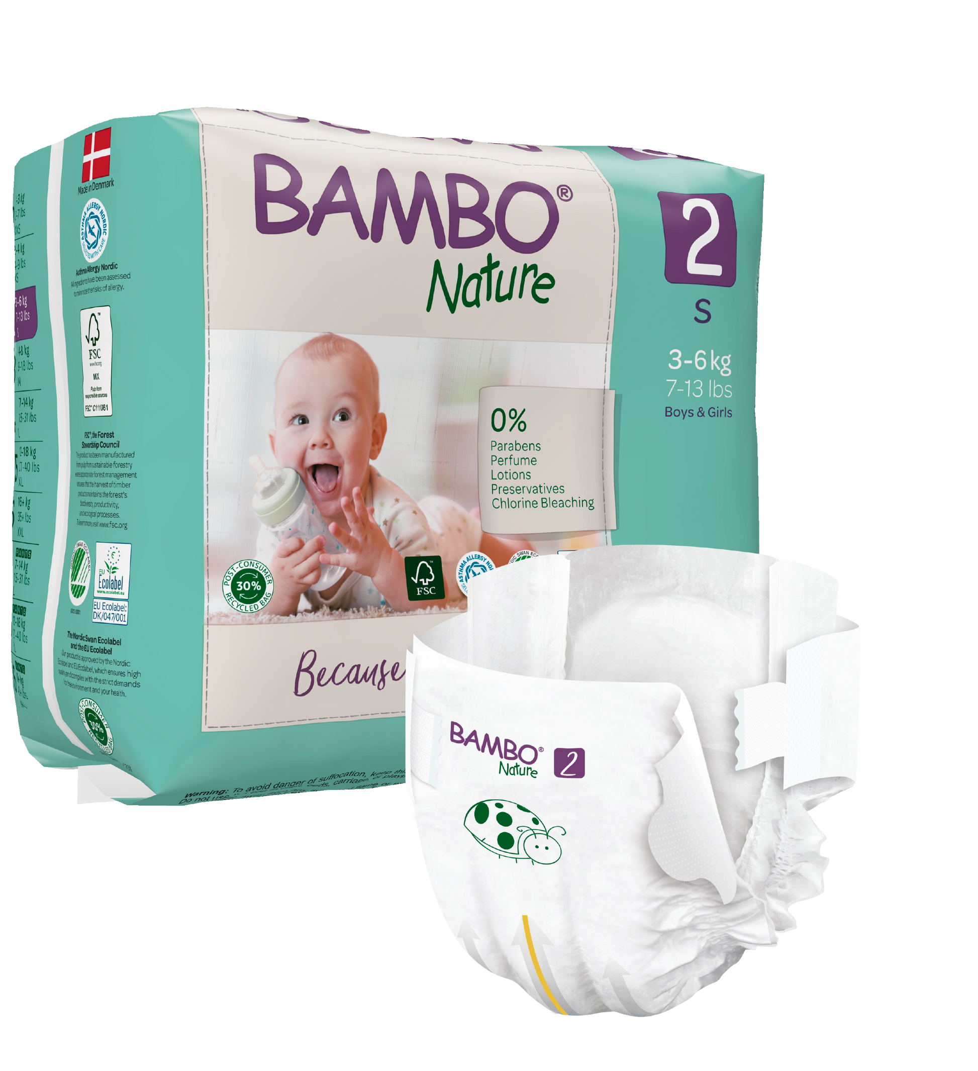 Bambo Nature Eco Nappies - Size 2 (7-13lbs/3-6kg)