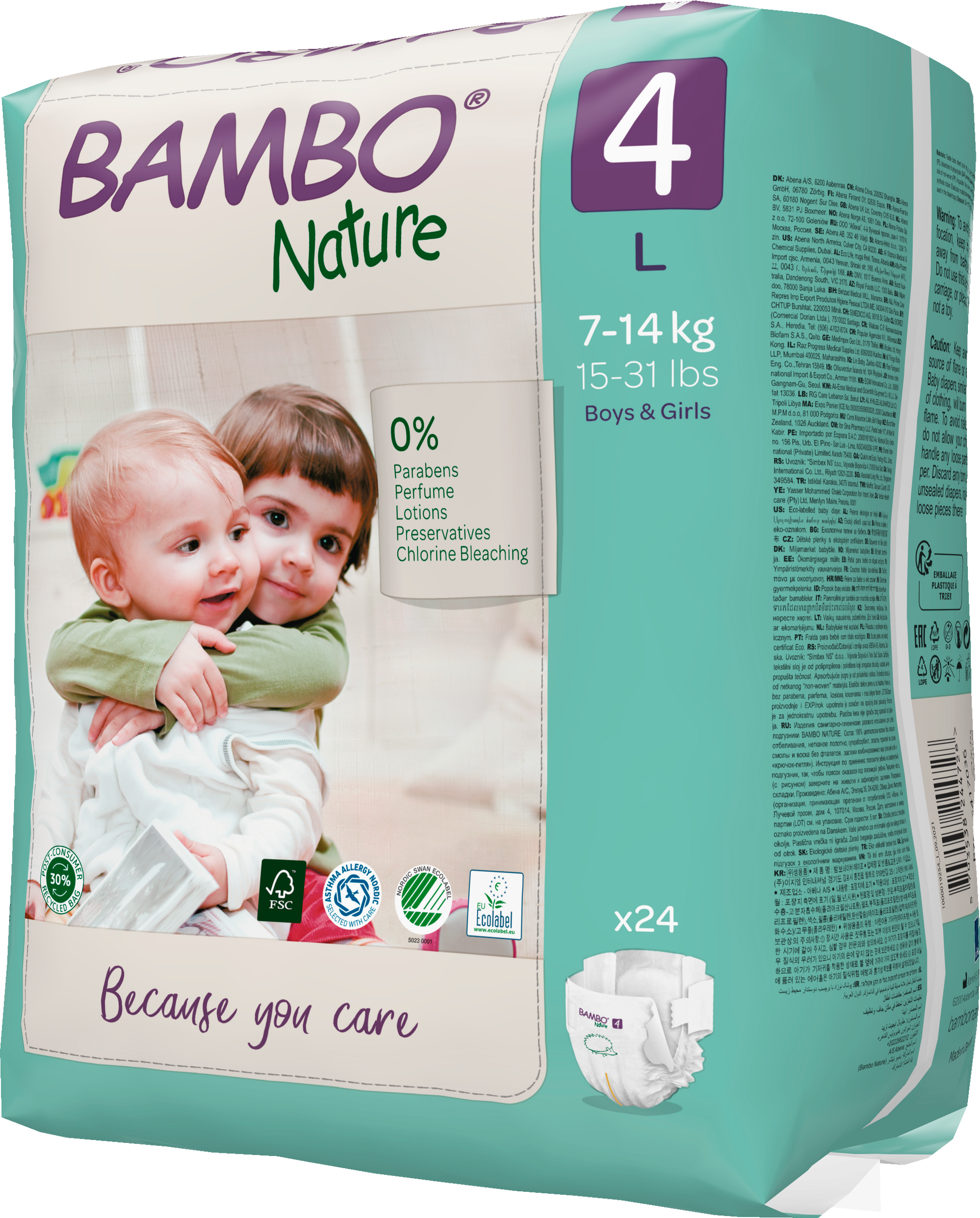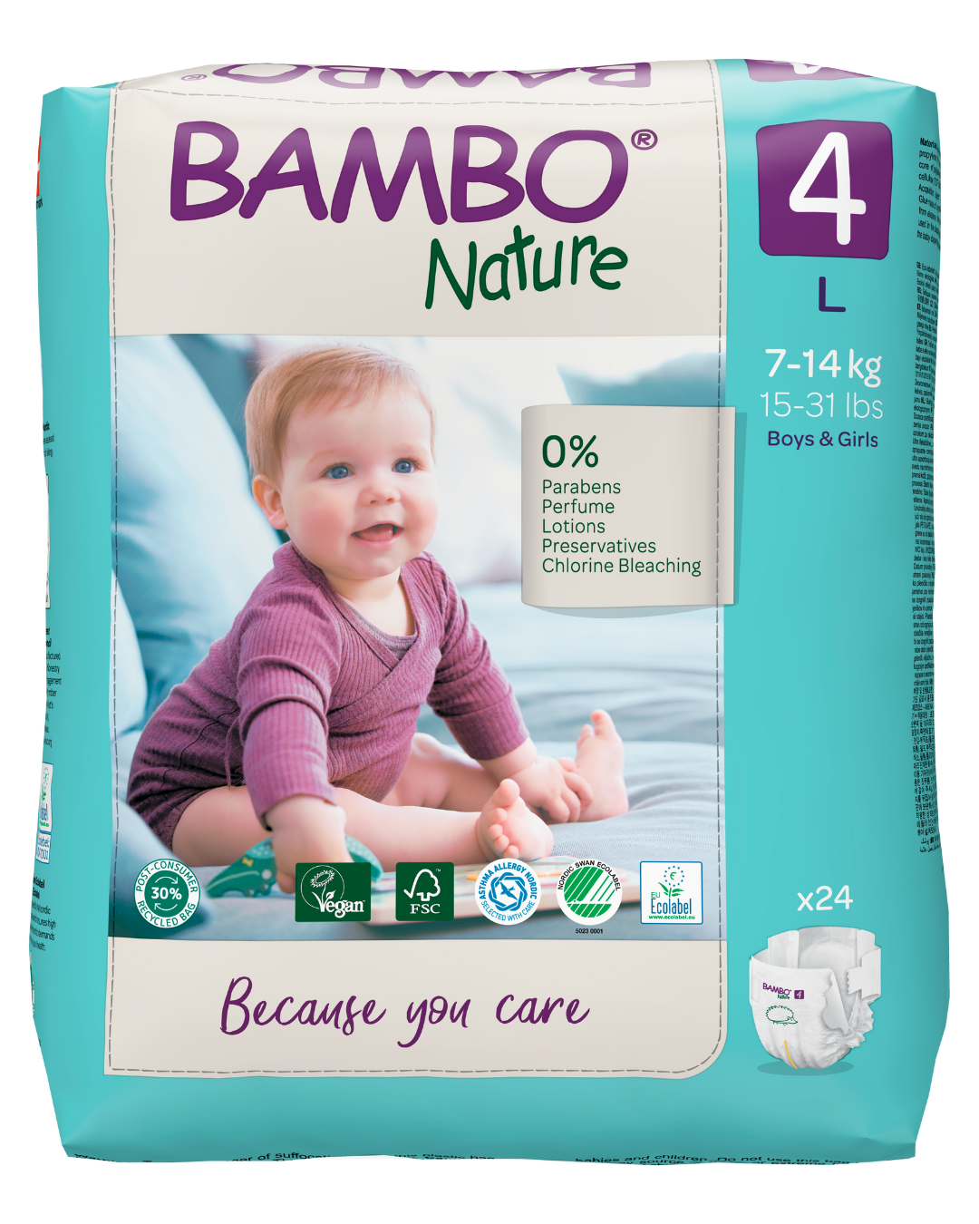 Bambo Nature Eco Nappies - Size 4 (15-40lbs/7-18kg)