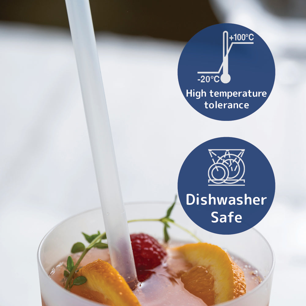 Our PP straws can be used again and again and are dishwasher-safe. In fact, they have been tested and passed 125 wash cycles in both household and industrial dishwashers with final rinse temperatures of up to 81 °C according to test standard EN 12875-1:2005.